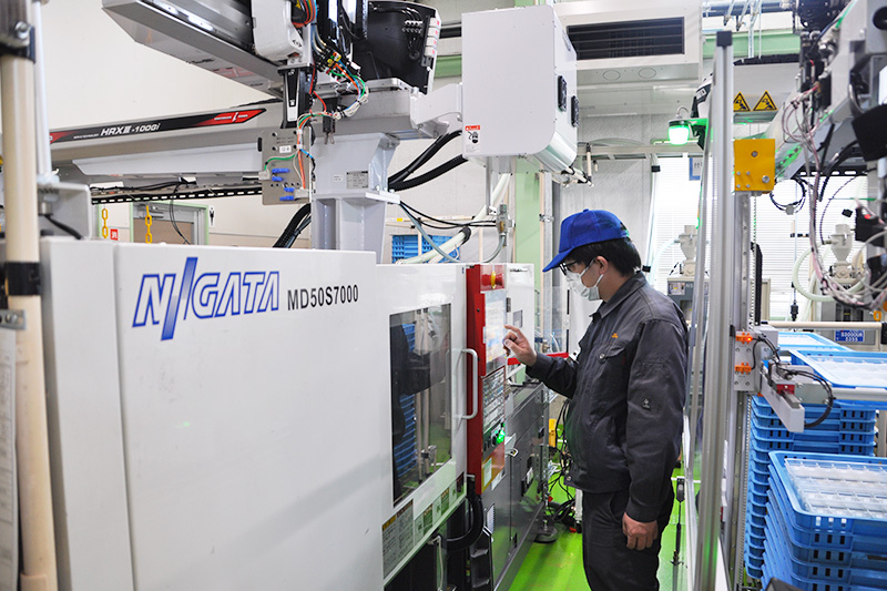 | 募集職種 | ①射出成形機のオペレーター(製造部) ②仕上加工(製造部) ③品質保証(品質保証部) ④検査員(品質保証部) ⑤ピッキング&出荷(工務部) |